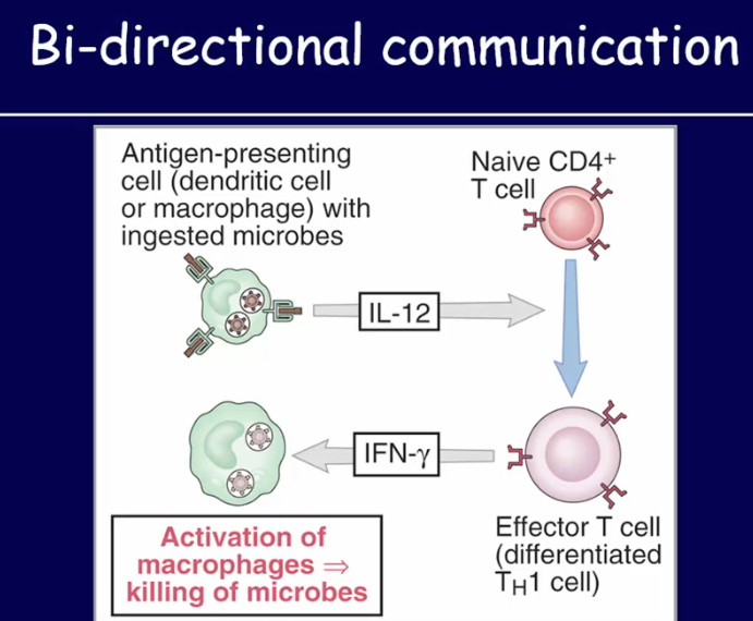 They make a ton of IFNg which is necessary of amplification loop which has a function of developing inflammation which allows more WBCs to be recruited at the site of infection.