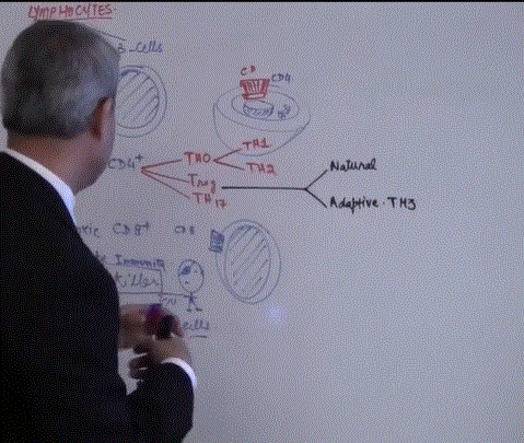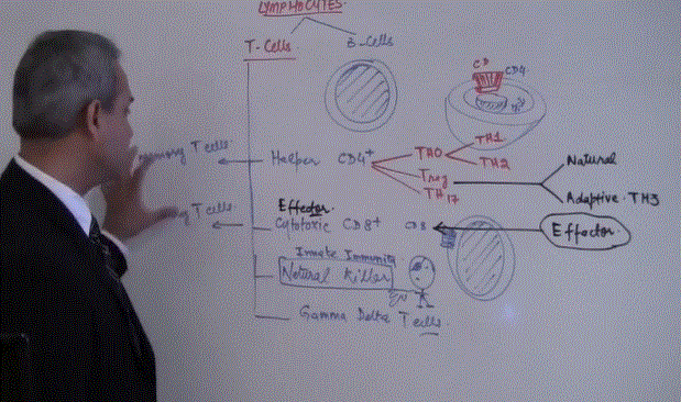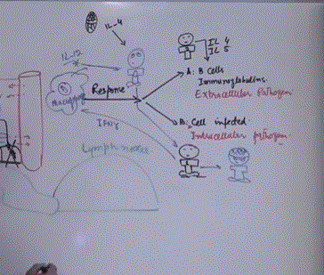 Niave T cell (T 0) in response to stimulation from macrophage (IL12) or unknown [ninja] cell (IL4)
