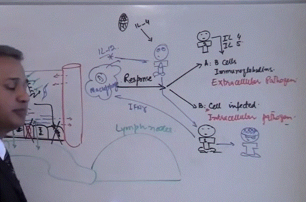 What immune cell decides between extracellular or intracellular response to a pathogen?