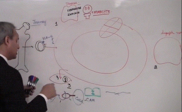 It allows the thymocyte to home in on the thalamus and to stay there for further development