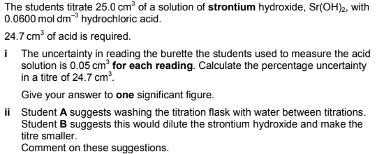 A student wants to determine the iron content of thyme. They do this by finding the concentration of the Fe2+ solution, by titration with standard potassium manganate(VII) solution.