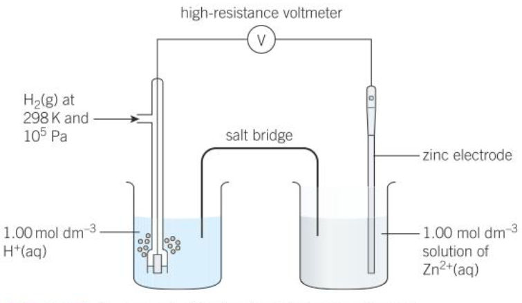 Draw a diagram of the apparatus used to determine the standard electrode potential of a Zn(s)/Zn2+(aq) half-cell.
