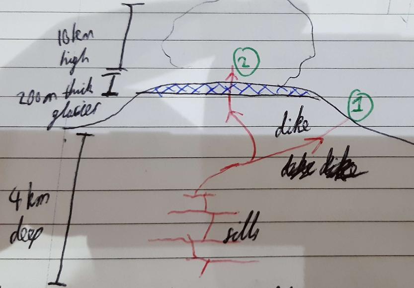 Describe + draw the process of the eruption at Eyjafjallajökull: