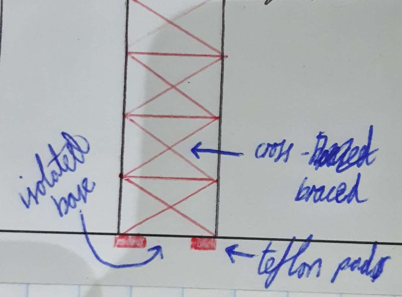 -teflon pads connect to building and absorb shocks