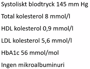 o Statiner i högdos (ska ner under 1,8 eller tom 1,4) + ev ezetimib för att nå målvärde
