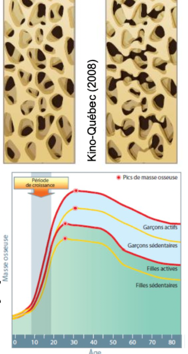 - En générale, aug de 2 à 4 % masse osseuse entre 9 & 30 ans