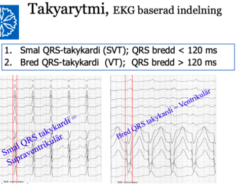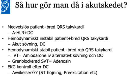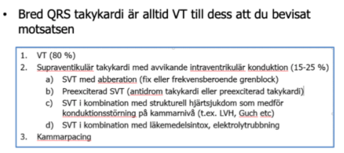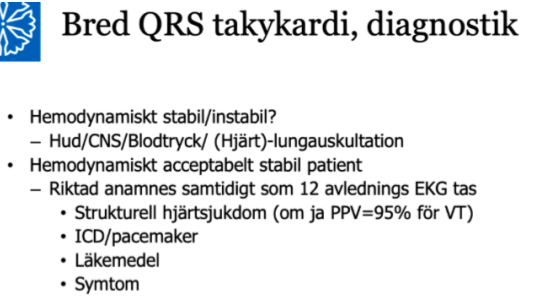 Viktiga saker att tänka på vid bred QRS takykardi? (2p)