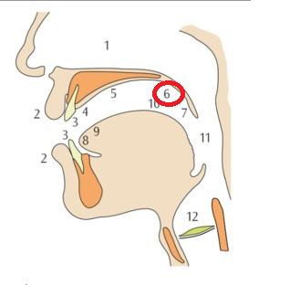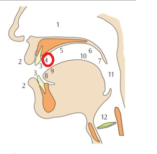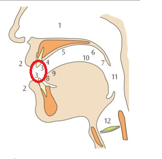 Hva kaller man artiklulasjonsstedet hvor tungen treffer gommen?