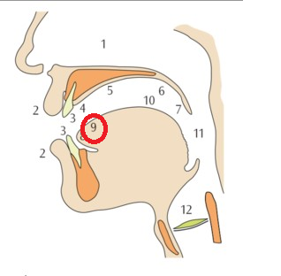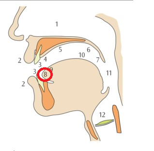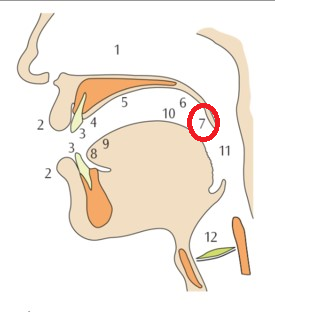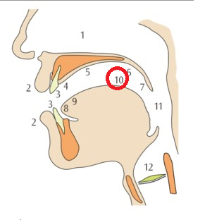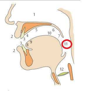 Hva kalles artikulasjonsstedet som er ved den myke ganen?