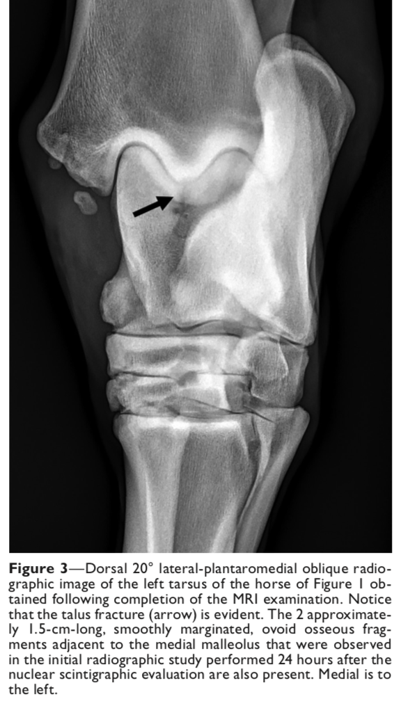 3) Medial malleolus - DP or preferably 10-15° DLPMO. Usually affects the axial aspect of the MM