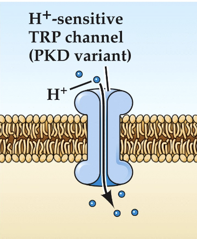 H+ sensitive TRP channel (PKD variant), use H+ ions as driving force for depolarization
