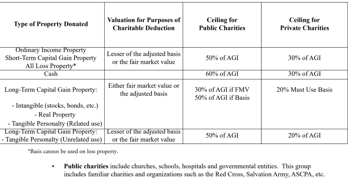 Limits for charitable deductions