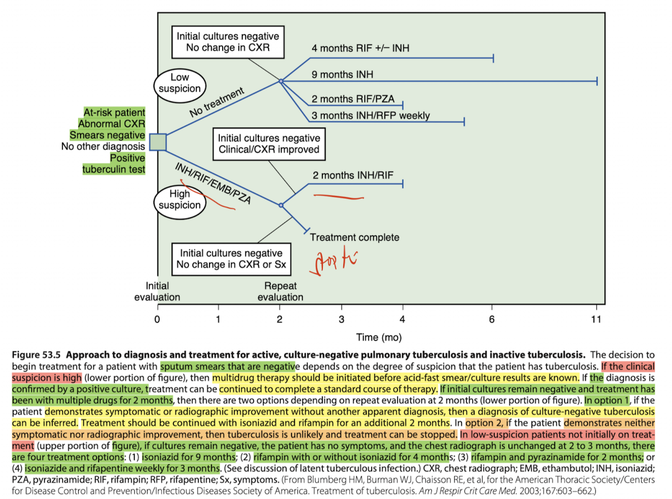 For a patient with culture-negative pulmonary TB who shows clinical and radiographic improvement after 2 months of intensive therapy, what is the recommended total duration of treatment?