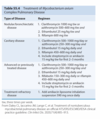 Macrolides (clarithromycin, azithromycin) and amikacin.