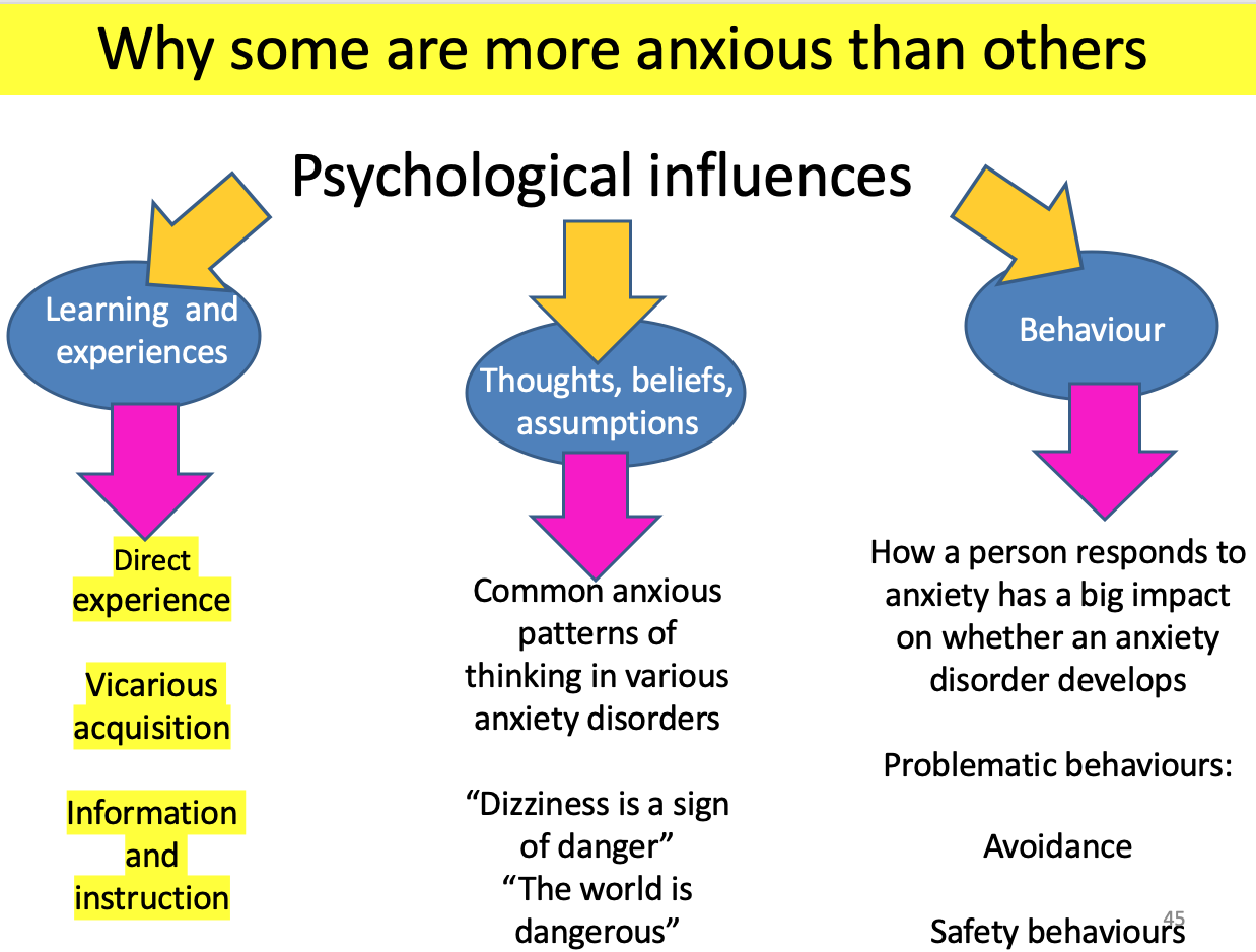 Nommez des éléments qui influencent les facteurs psychologiques qui génèrent de l’anxiété (3)