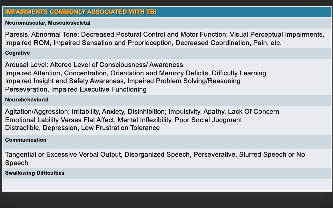 Characteristics of each of the Rancho Levels of Cognitive Funciton