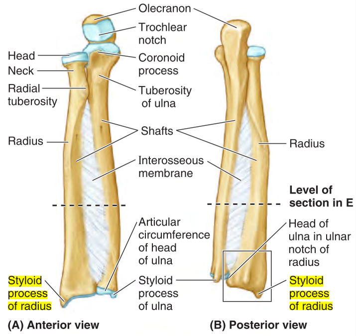 Since the large styloid process of the radius extends farther distally than the head of the ulnar, only the radius contributes to the wrist joint.