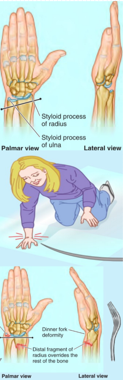 The most comon cause of Colles fracture is from trying to break one’s fall by landing on the hand in the pronated position.