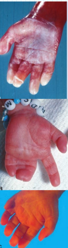 Polydactyly - the presence of extra fingers or toes (usually lacks normal muscle connection).