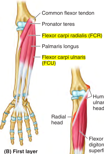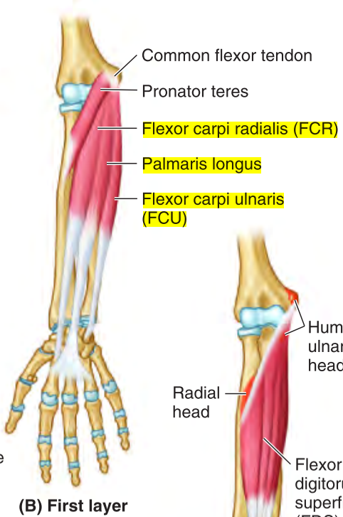 The Flexor carpi radialis (FCR) is responsible for flexion and abduction of the hand at the wrist.