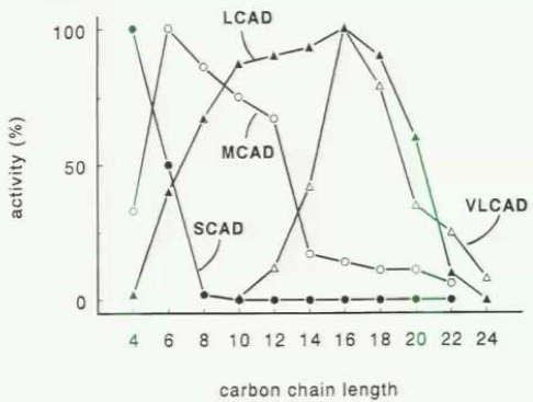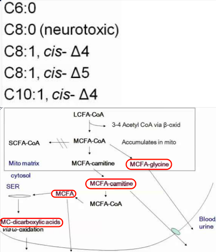 MCAD is required to convert to the next intermediate: 2-trans-4-cis-decanoyl CoA; however, normal MCAD activity here is low and with MCADD 4-cis decanoic acid accumulates and is thought to be neurotoxic.