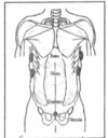 Placez la main étalée du patient sur l’abdomen de par et d’autre du nombril. Tester un m. intact