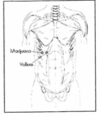 Palper la partie inféneure à .la pointe de la cage thoracique des deux côtés et recherchez la distorsion haute et basse de toute la cage thoracique.