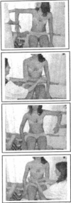 Sur la partie inférieure de la cage thoracique, étalez votre main le plus possible afin de pouvoir tenir Ia plus grande partie de la cage thoracique sous la poitrine. Faite la même chose au-dessus de la poitrine du côté des côtes les plus supérieures. Sur un expire profond, faite un mouvement de ciseau de toute la cage thoracique, vers le haut depuis la partie inférieure et vers le bas depuis la partie supérieure, comme indiqué par le test de rotation et la palpation. En utilisant un test de pincement (glissant les doigts ensemble) sur le sternum, vous allez trouver que T1 à T12 peuvent être antérieures. Corrigez ces antériorités. Faire un test en touchant le diaphragme de part et d’autre, vous allez trouver un spasme bilatéral. Conigez le diaphragme sur les points faibles décelez en utilisant le pistolet réflexe afin de secouer le choquer le diaphragme. Corrigez T8 dans les 3 phases de respiration. Beaucoup de symptômes sévères ont maintenant disparus : les problèmes de cœur, de respiration, les hernies hiatale (en enlevant un plissement du diaphragme), les problèmes digestifs et de reproduction. L’ajustement est effectué plus facilement sur les patients corpulent et musclé, en leur demandant de lever au-dessus de la tête, le bras du côté le plus inférieur. La torsion des côtes peut provoquer une dissimulation massive en produisant un nombre considérable de faux symptômes.