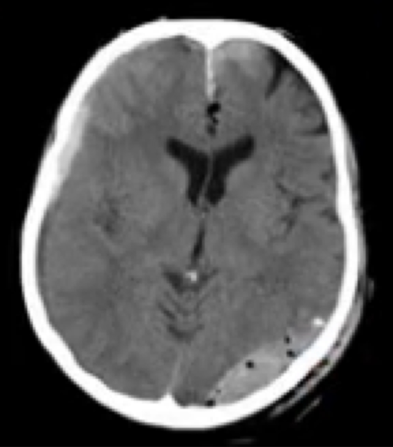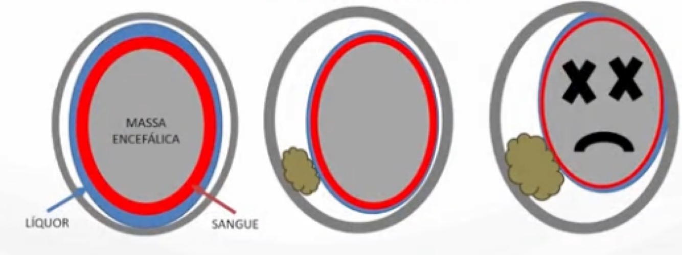 As bolhas de ar indicam pneumoencéfalo.