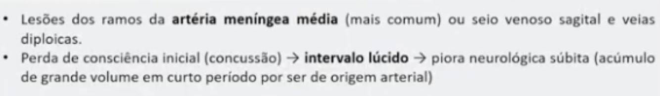 Características do hematoma epidural: