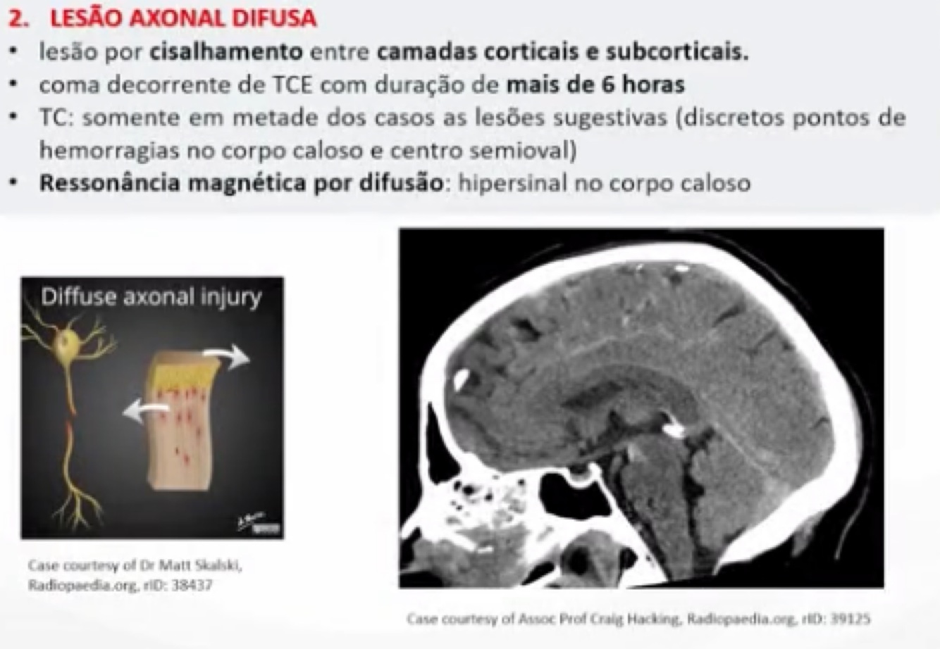 Características da lesão axonal difusa: