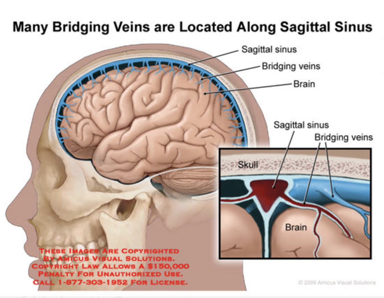 Acontece entre a dura e a aracnoide, entre elas não tem ponto de fixação, então preenche o espaço com sangue. Tem uma imagem crescente