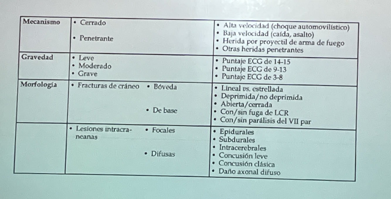 Secundaria: Consecuencia de lesión primaria (hematoma intracraneal, edema cerebral, hipoxia, hipoperfusión, neuroinfección)