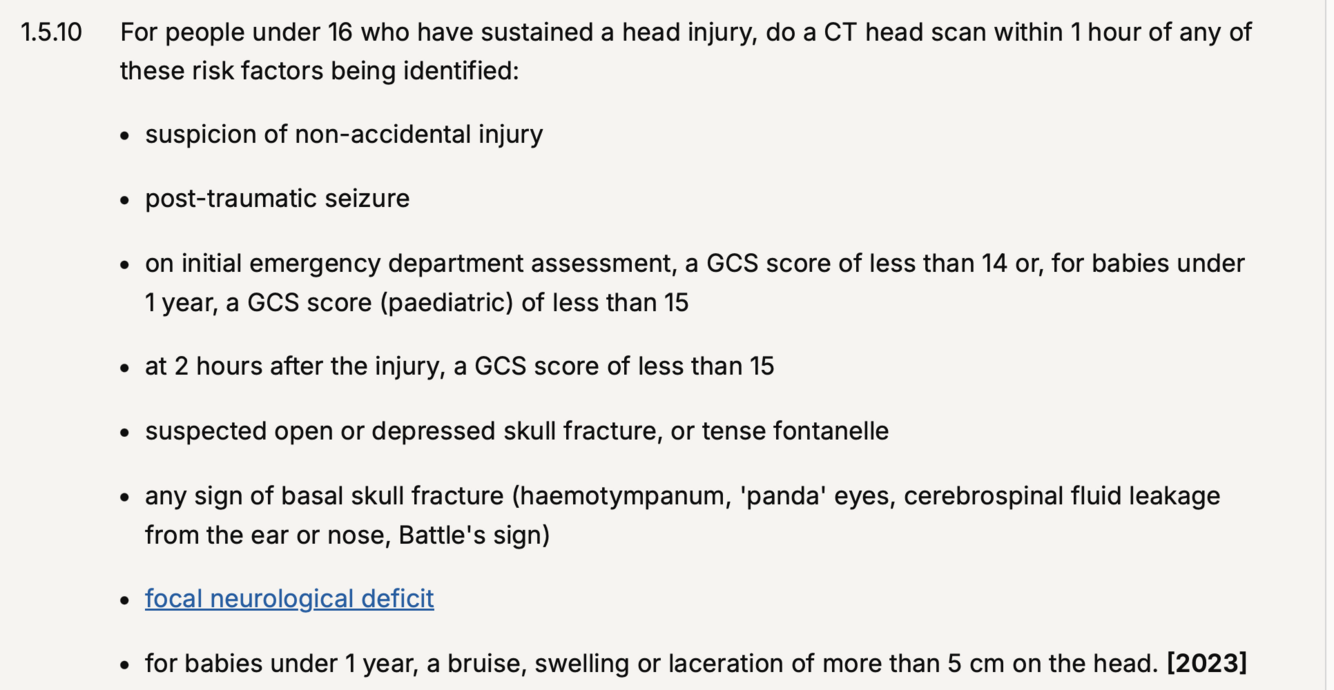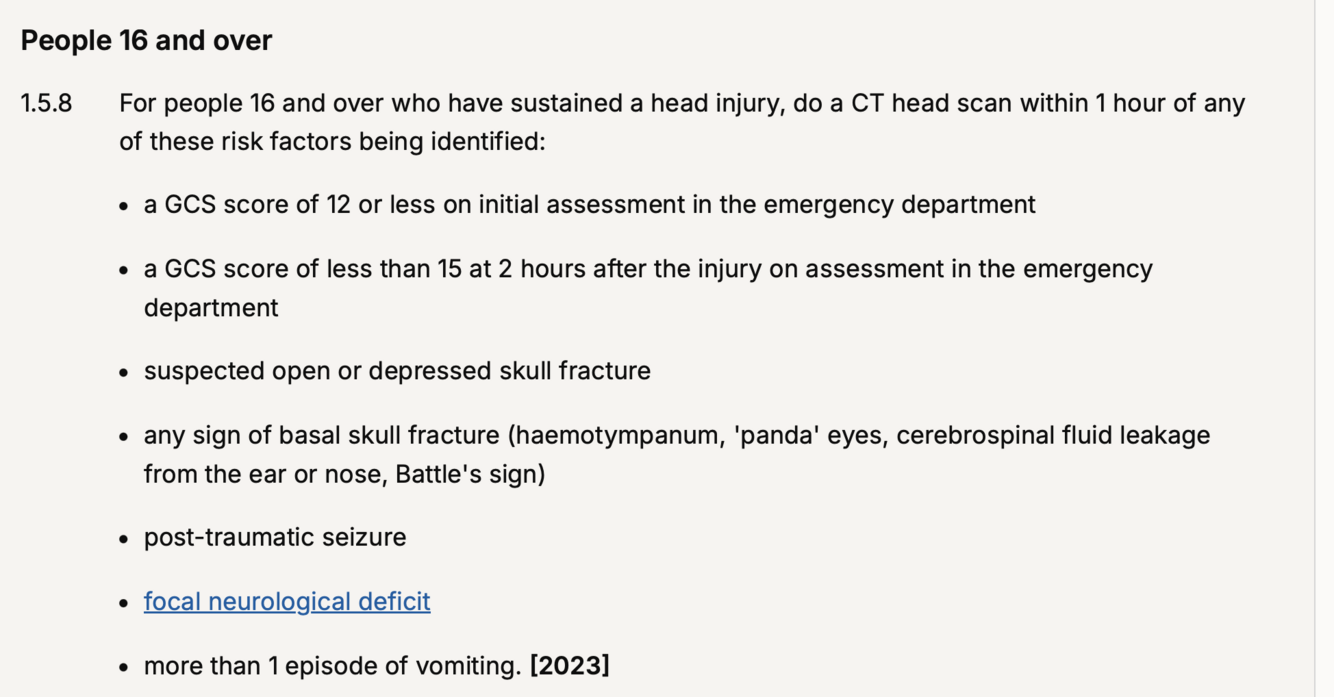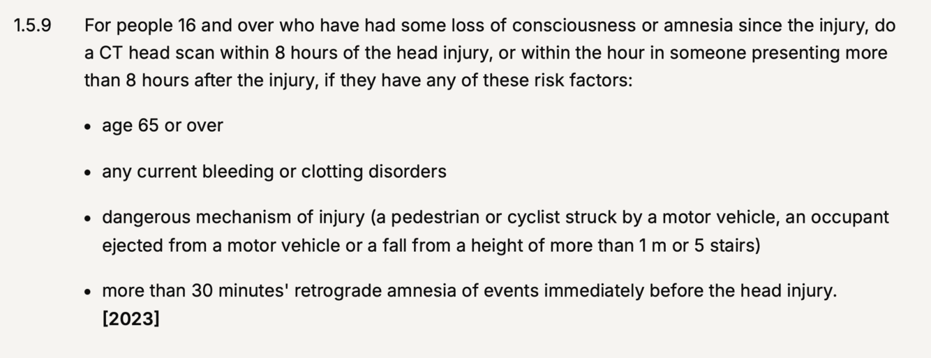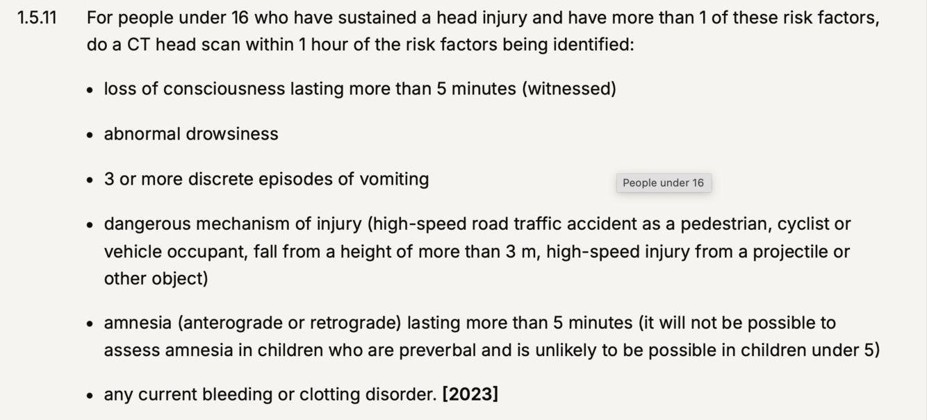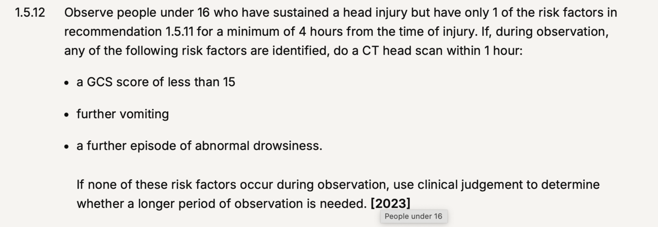 16+ head injury, criteria for CT