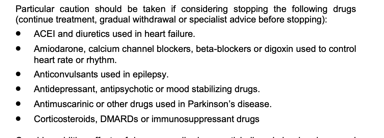 particular caution should be taken with stopping which drugs