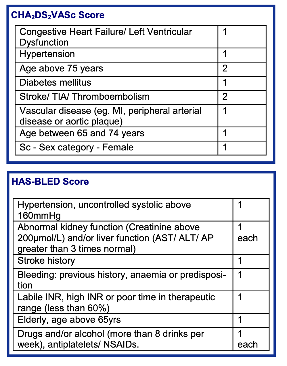 Hasbled - scores for major bleeding risk for patients on anticoagulation to assess quality of atrial fibrillation care
