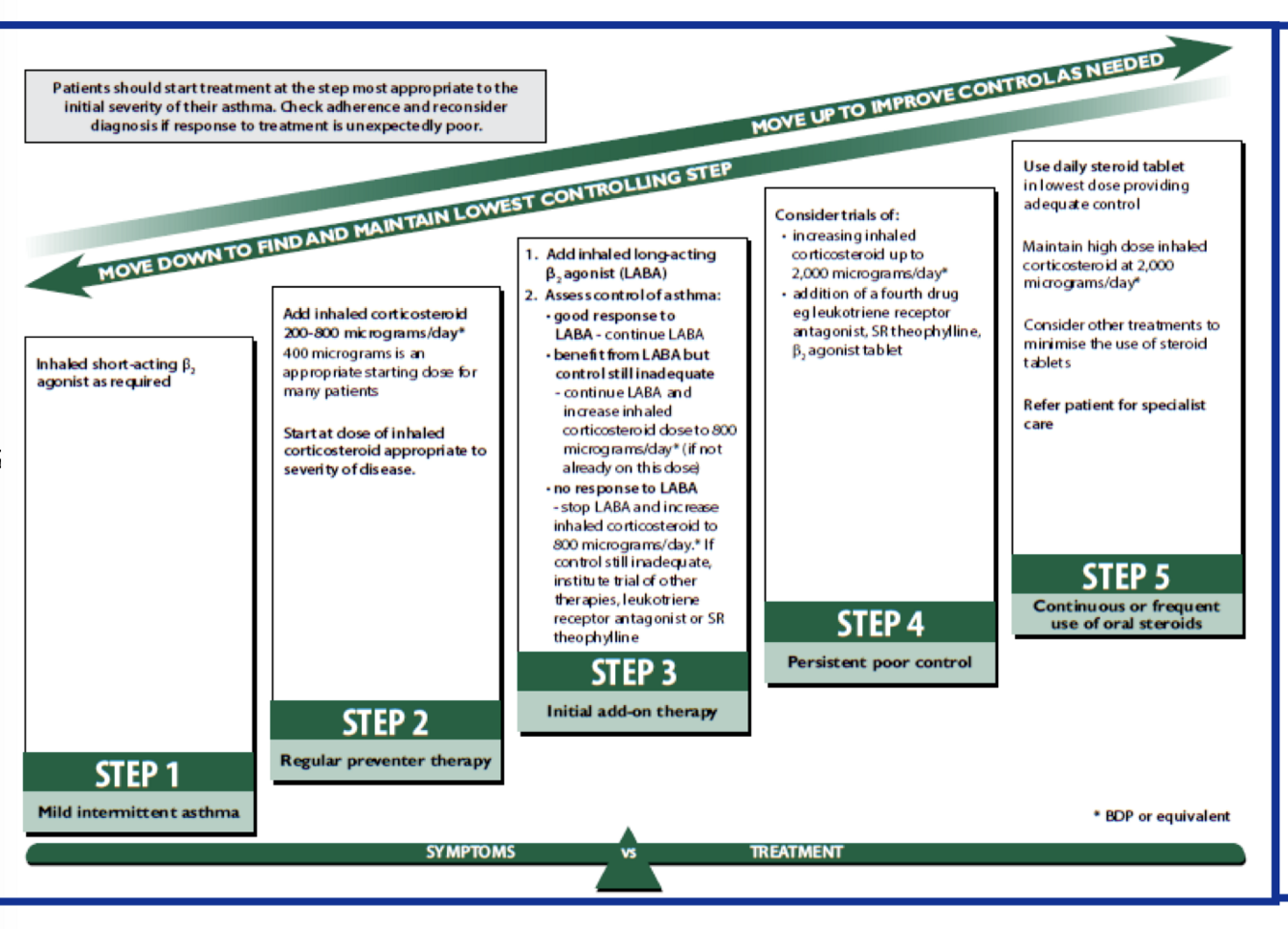 add LABA, assess control, some response = increase ICS/stob LABA if no response