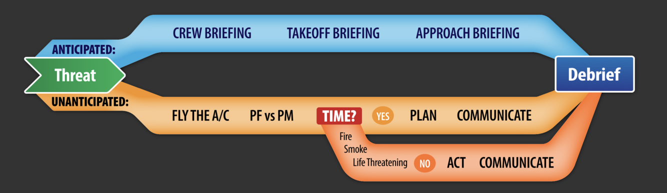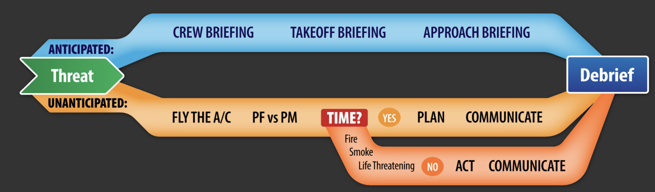 Threat and Error Application Model; it prioritizes CRM skills and helps mitigate threats.