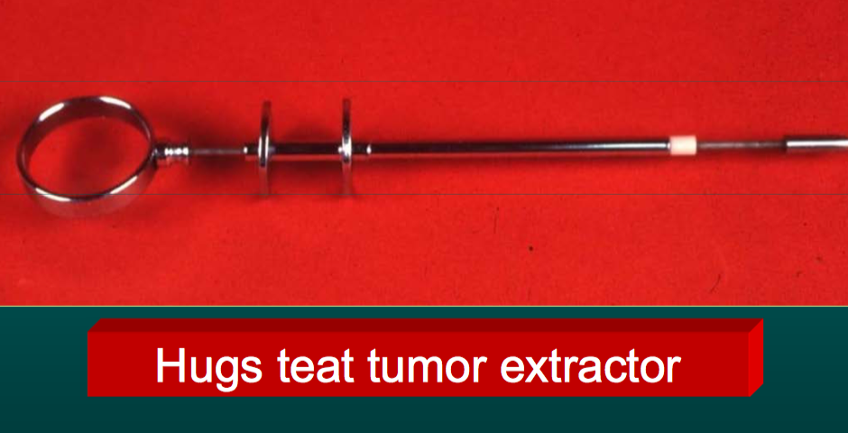 The Hugs teat tumor extractor is used for obstruction in the area of the __________