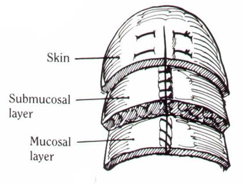 A cow presents with an emergency full-thickness teat laceration. How would you close it?