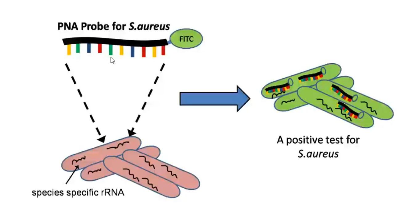 PNA against an organism-specific ribosomal RNA which is conjugated to a fluorophore