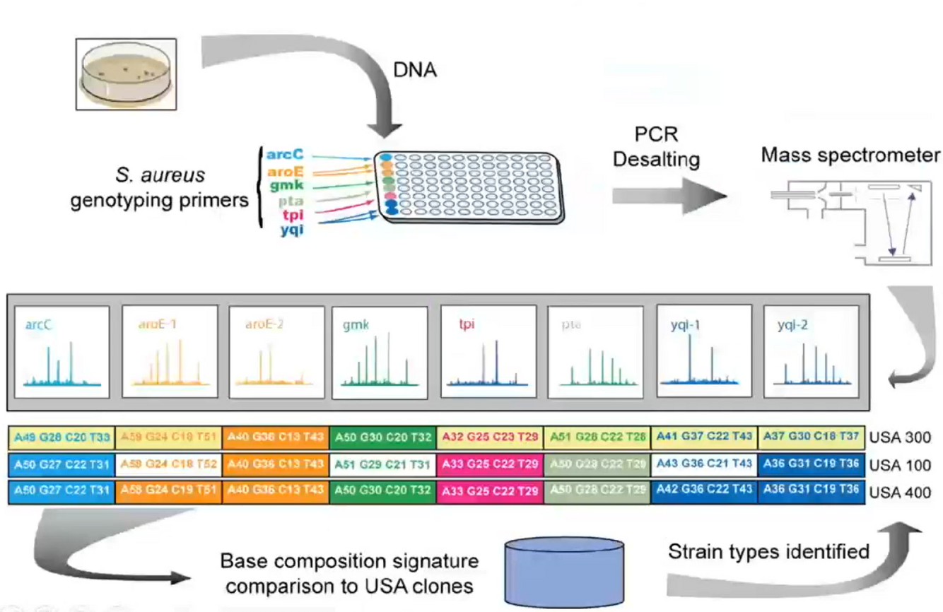 Starts with PCR amplification of organism-specific 16S ribosomal RNAs - then those amplicons are submitted directly for mass spec after nucleic acid purification.