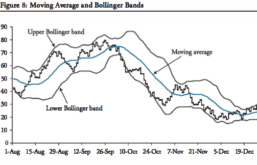 Prices moving above/below the bollinger bands can be thought of as OVERBOUGHT/SOLD.