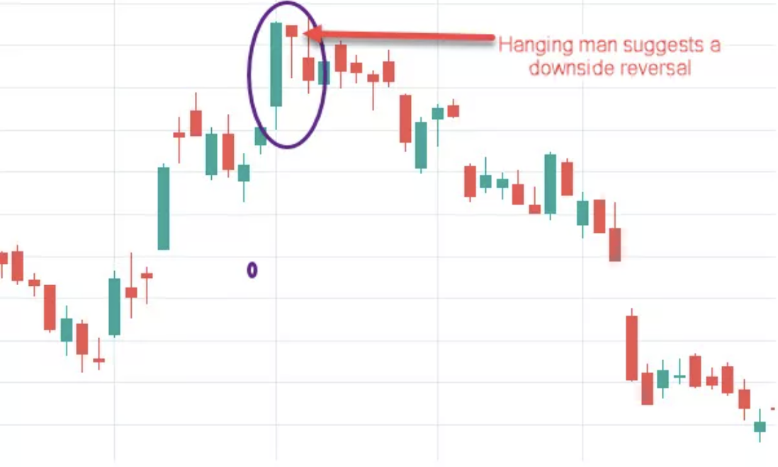 A hanging man pattern suggests an important potential reversal lower and is the corollary to the bullish hammer formation. The story behind the candle is that, for the first time in many days, selling interest has entered the market, leading to the long tail to the downside. The buyers fought back, and the end result is a small, dark body at the top of the candle. Confirmation of a short signal comes with a dark candle on the following day.