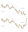 These are straight lines drawn on charts to connect a series of prices. They help identify the direction of the market movement, whether it’s an upward, downward, or sideways trend.