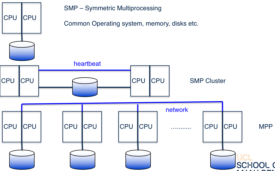 Initially a mainframe with one CPU, connected through an I/O subsystem to disks – a uniprocessor