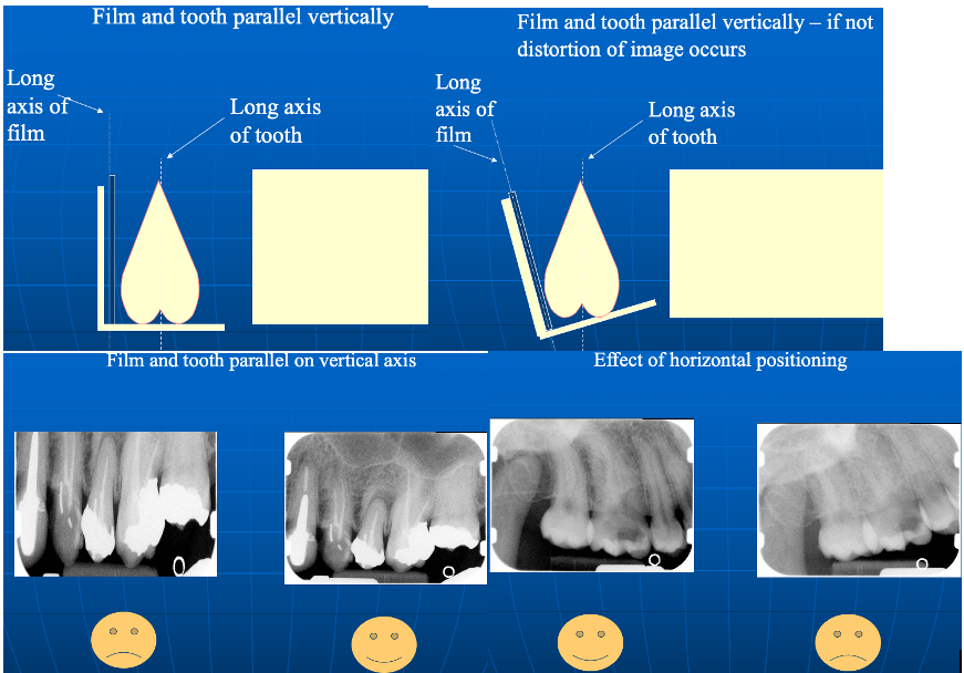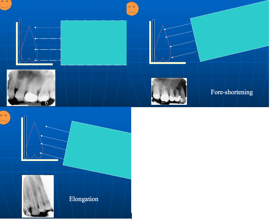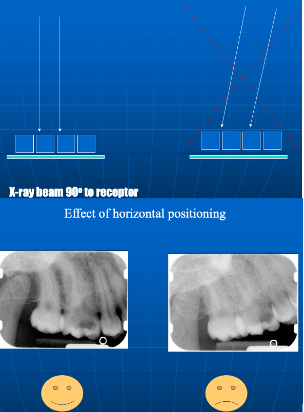 xray beam should be at right angles to the tooth/receptor