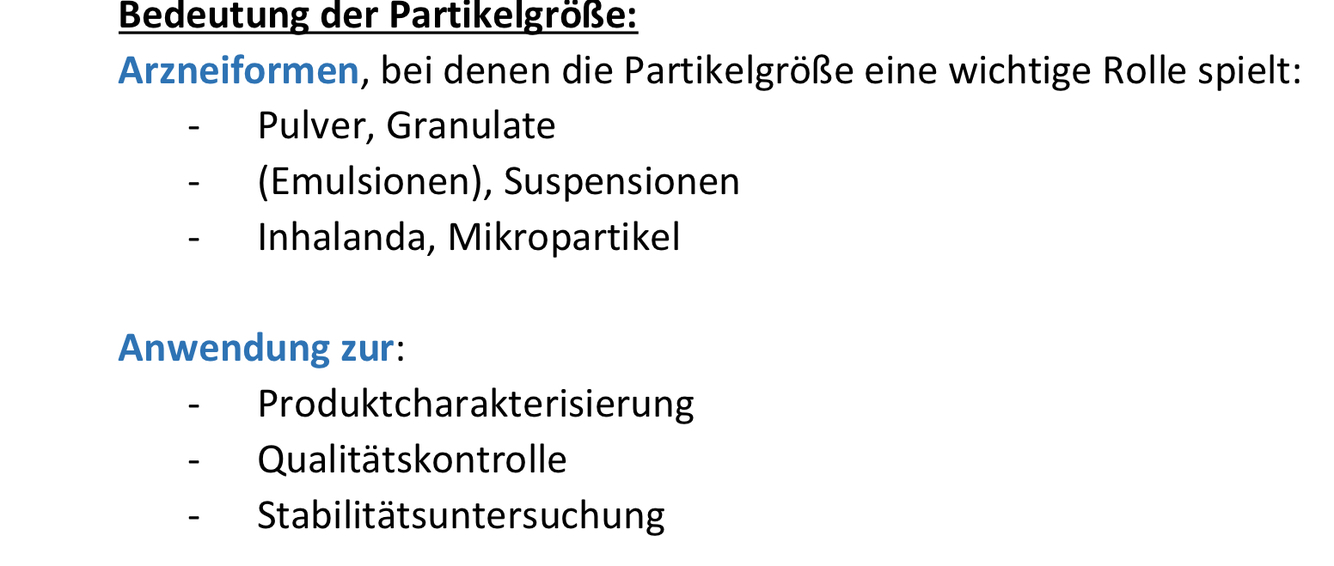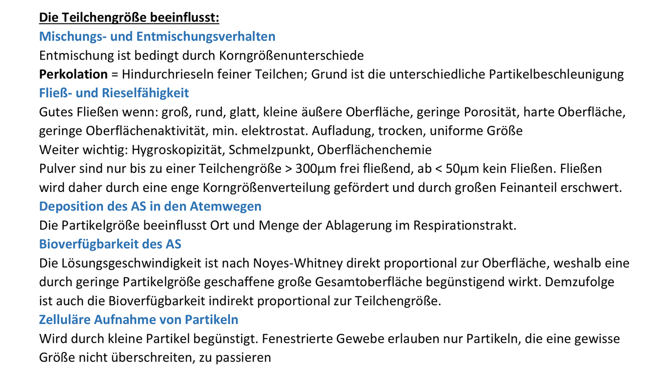 Partikelgröße wichtig für welche Arzneiformen