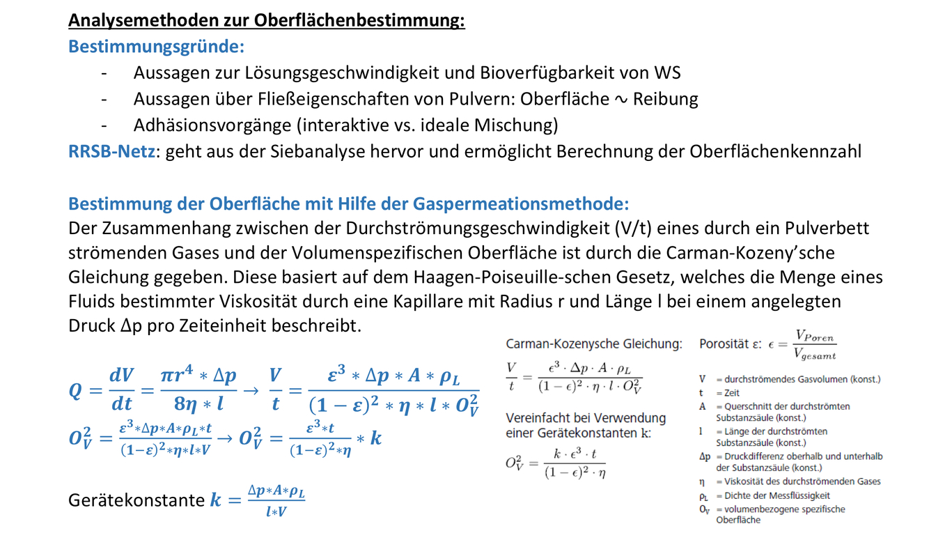Bestimmung der Oberfläche mit Hilfe der Gaspermeationsmethode