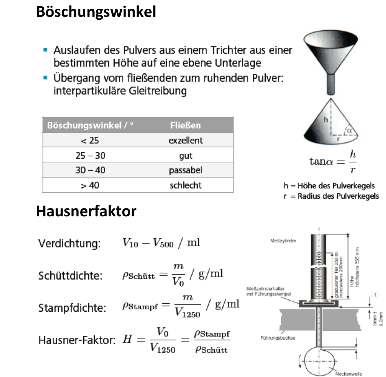Böschungswinkel und Hausnerfaktor